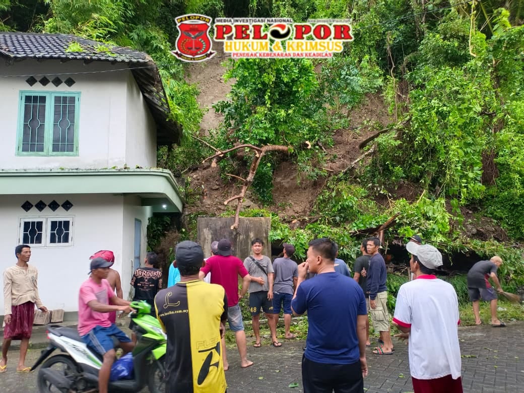 Gresik, peloporkrimsus.com – Guyuran hujan deras disertai angin kencang di Pulau Bawean khususnya kecamatan Sangkapura menyebabkan musibah tanah longsor di Dusun Bangsal, Desa Dekatagung, Sabtu (20/12/2025).