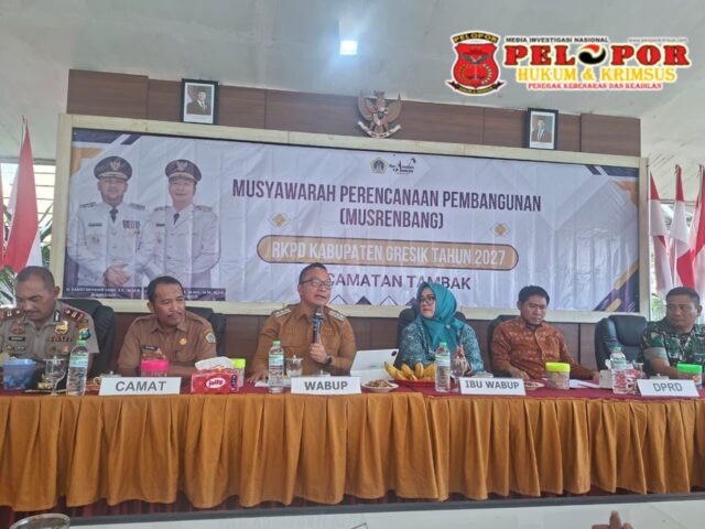 Gresik,peloporkrimsus.com – Musyawarah Perencanaan Pembangunan (Musrenbang) Kecamatan Tambak yang digelar pada Senin, 9 Februari 2026 di Pendopo Kantor Kecamatan Tambak sejak pukul 09.00 WIB hingga selesai berlangsung lancar dan partisipatif. Forum tahunan perencanaan pembangunan tersebut menjadi ruang dialog antara pemerintah daerah dan masyarakat dalam merumuskan prioritas pembangunan daerah.