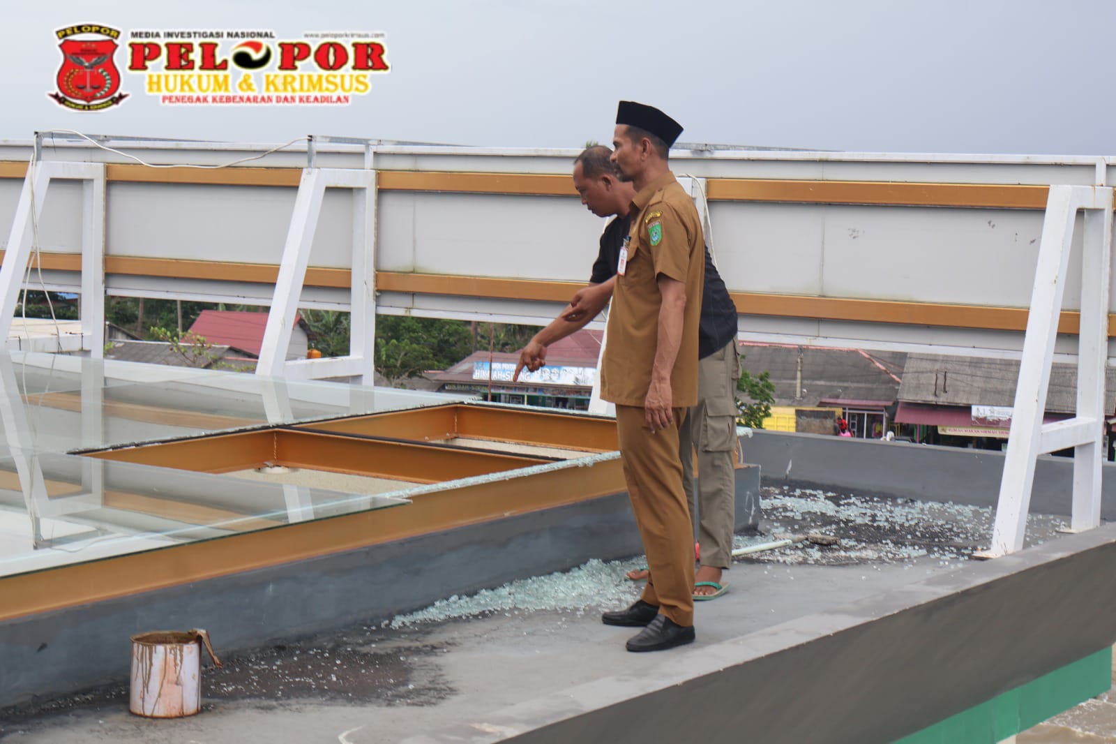 Selain itu, salah satu kaca setebal 10 milimeter yang terpasang sebagai atap kanopi depan pecah, diduga tertimpa material yang terbang saat cuaca ekstrem beberapa tahun lalu.