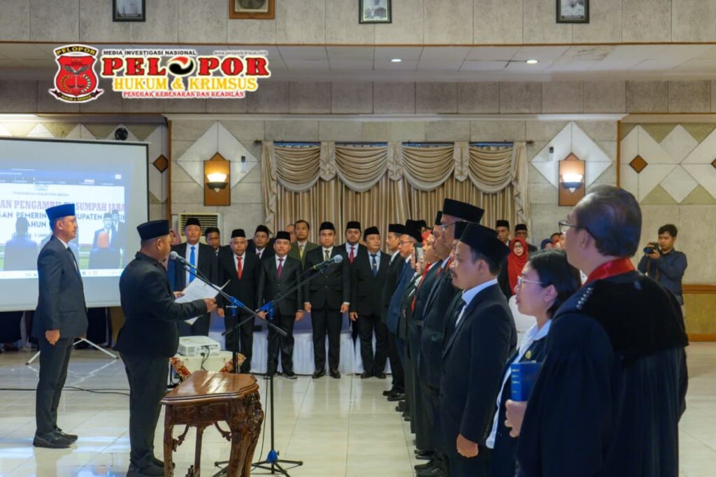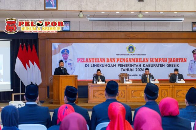 Gresik,peloporkrimsus.com – Bupati Gresik Fandi Akhmad Yani mengambil sumpah dan melantik 55 kepala sekolah serta 21 pejabat fungsional di lingkungan Pemerintah Kabupaten Gresik. Pelantikan tersebut berlangsung di Ruang Mandala Bhakti Praja, Kantor Bupati Gresik, pada Senin (5/1/26).
