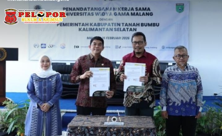 BATULICIN,Peloporkrimsus.com – Pemerintah Kabupaten Tanah Bumbu terus memperkuat komitmennya dalam membangun sumber daya manusia (SDM) unggul dan inovatif. Hal ini ditandai dengan penandatanganan Kesepakatan Bersama (KSB) dan Perjanjian Kerja Sama (PKS) antara Bupati Tanah Bumbu Andi Rudi Latif dan Universitas Widya Gama Malang, yang berlangsung di kampus Universitas Widya Gama Malang, Senin (16/02/2026).