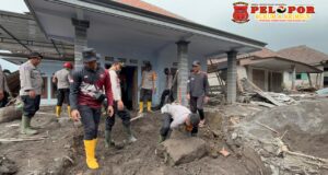 Polisi Bersihkan Rumah Warga Terdampak Erupsi Gunung Semeru di Lumajang