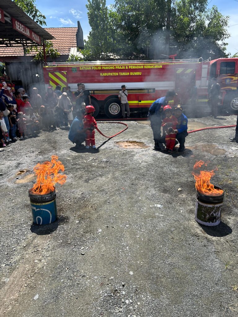 Tidak hanya sekadar melihat, para siswa juga diajak berpartisipasi dalam simulasi sederhana mengenai cara mencegah dan menanggulangi kebakaran dalam skala kecil. Mereka diperlihatkan bagaimana api bisa muncul, bagaimana alat pemadam digunakan, hingga bagaimana bersikap ketika keadaan darurat terjadi.