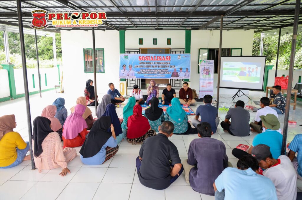TANAH BUMBU, peloporkrimsus.com 12 Juli 2025– Dalam upaya melindungi ekosistem dan meningkatkan kesejahteraan masyarakat, Desa Muara Pagatan Tengah telah melaksanakan sosialisasi manfaat BPJS Ketenagakerjaan. Kegiatan ini dihadiri oleh Kepala Desa Siti Hardianti, Kepala Dinas Pemberdayaan Masyarakat dan Desa (PMD) Syamsir, serta Kepala Bidang Kepesertaan BPJS Ketenagakerjaan Kantor Cabang Batulicin, Yoga Suci Hartas.