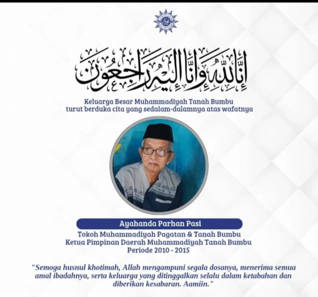 BATULICIN, peloporkrimsus.com – Tanah Bumbu berduka. Parhan Pasi, tokoh terkemuka dari Muhammadiyah dan salah satu pendiri Kabupaten Tanah Bumbu, telah berpulang pada Rabu, 17 September 2025. Almarhum kini disemayamkan di rumah duka yang terletak di Jalan A. Yani, Kelurahan Pagatan, Kecamatan Kusan Hilir.
