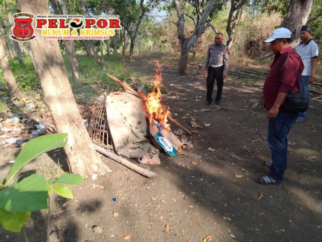 Meskipun tidak ada pelaku yang berhasil diamankan, petugas tetap mengambil tindakan tegas. Sejumlah barang bukti berupa terpal dan kurungan ayam yang digunakan dalam kegiatan sabung ayam langsung dimusnahkan dengan cara dibakar di tempat untuk mencegah kegiatan serupa terulang.