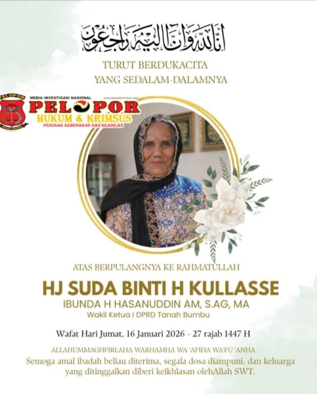 Kabar duka cita menyelimuti keluarga besar Wakil Ketua DPRD Kabupaten Tanah Bumbu, H. Hasanuddin. Ibunda tercinta, Hj. Suda binti H. Kullasse, telah berpulang ke rahmatullah pada Jumat, 16 Januari 2026, bertepatan dengan 27 Rajab 1447 Hijriah.