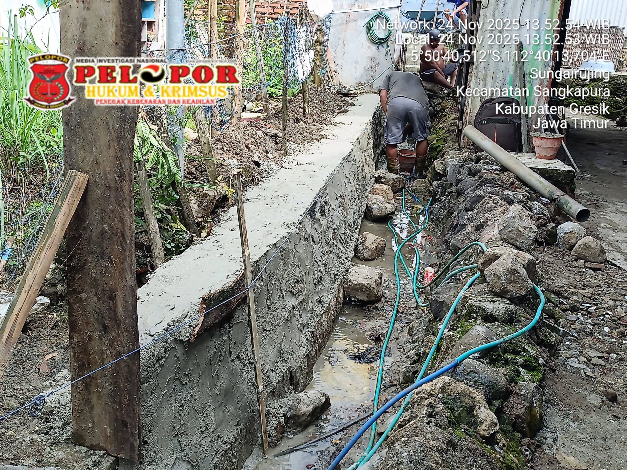 Gresik,peloporkrimsus.com – Pemerintah Desa Sungairujing, Kecamatan Sangkapura, Bawean, Kabupaten Gresik manfaatkan Dana Desa tahun 2025 untuk membangun drainase uditch di dusun Sungaitirta. Anehnya, pembangunan drainase tersebut justru rehabilitasi ringan pada selokan yang ada di area pemukiman warga.