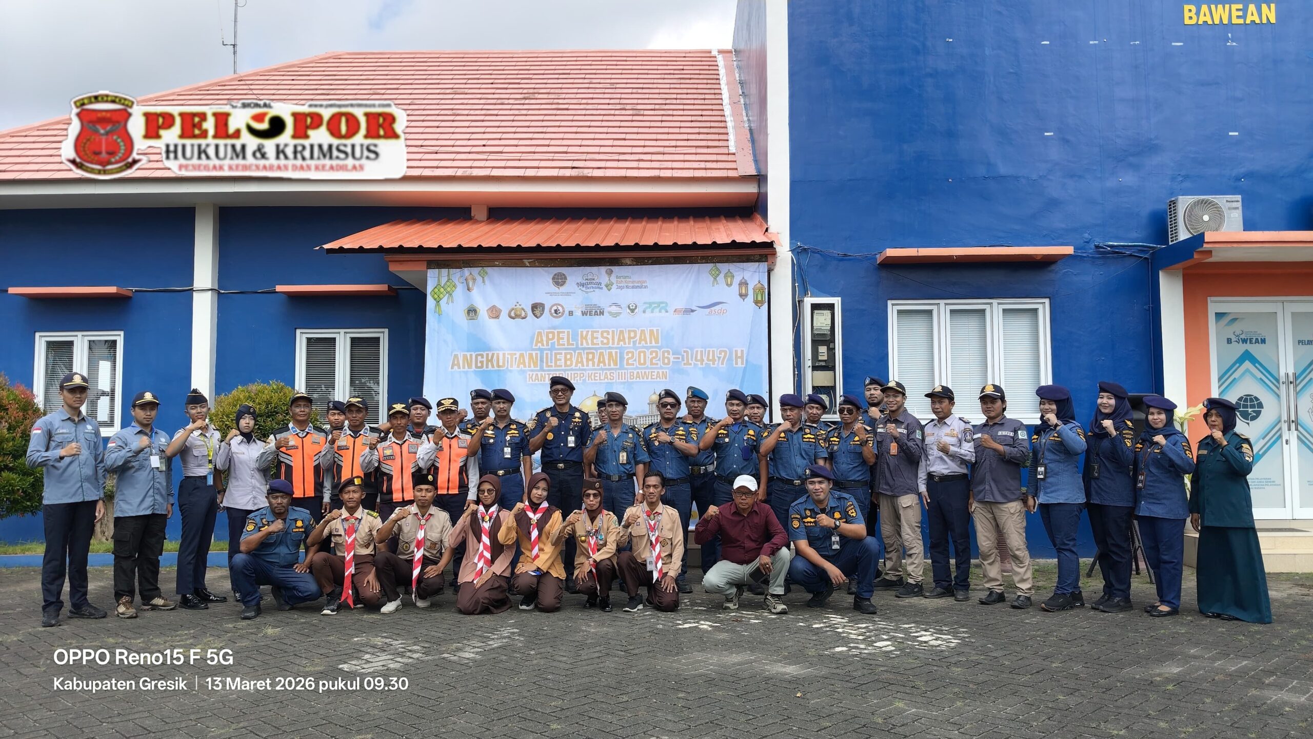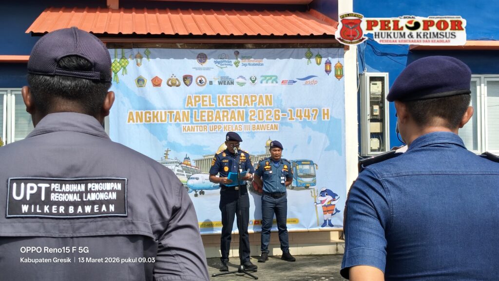 Gresik,peloporkrimsus.com – Kantor Unit Penyelenggara Pelabuhan (KUPP) Kelas III Bawean menggelar Apel Kesiapan Angkutan Laut Lebaran 2026 atau 1447 Hijriah di halaman kantor Pelabuhan pada Jum’at pagi, 13 Maret 2026.