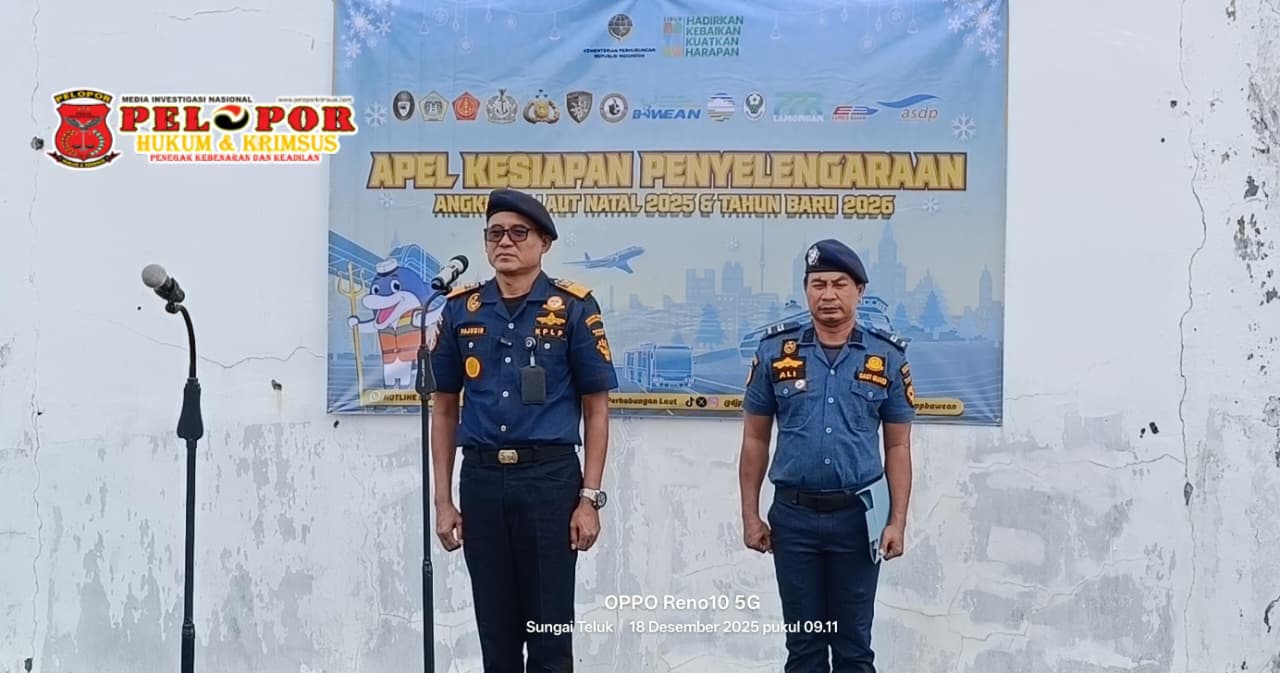Gresik,peloporkrimsus.com – Kantor Unit Penyelenggara Pelabuhan (KUPP) Kelas III Bawean menggelar Apel kesiagaan pembukaan pos koordinasi penyelenggaraan angkutan laut Natal 2025 dan Tahun Baru 2026, di Terminal Penumpang Pelabuhan Bawean, Kamis (18/12/2025).