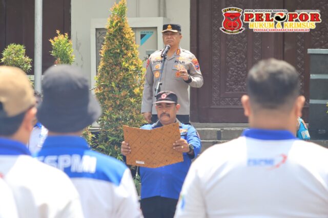 SURABAYA, peloporkrimsus.com –Kapolrestabes Surabaya, Kombes Pol Luthfi Sulistiawan memimpin Apel Kebangsaan di lapangan A Mapolrestabes Surabaya bersama perwakilan serikat pekerja dari berbagai elemen di Surabaya.