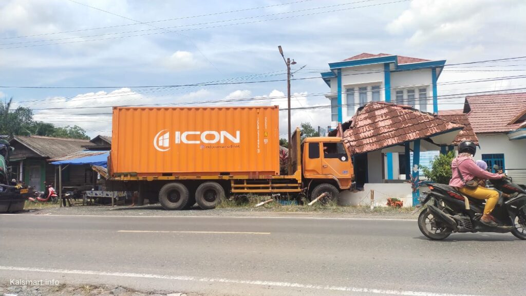 Tanah Bumbu,Peloporkrimsus.com – Suasana pagi di Jalan Nasional Desa Sebamban Baru, Kecamatan Sungai Loban, mendadak berubah mencekam pada Jumat subuh (05.00 WITA) ketika dua truk kontainer bertabrakan keras hingga menyebabkan bangunan Pos Induk Desa Sebamban Baru rusak parah. Meski tak menimbulkan korban jiwa, dampak kecelakaan ini memantik kekhawatiran mendalam soal keselamatan pengguna jalan di jalur vital tersebut.