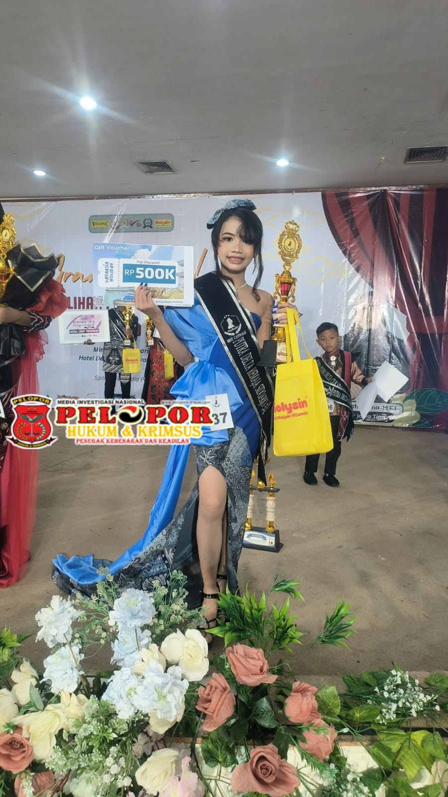 tampil memukau dengan balutan kebaya khas Jawa Timur yang anggun, mencerminkan karakter remaja yang percaya diri dan berbudaya. Penampilannya memikat dewan juri dan mengantarkannya meraih gelar bergengsi dalam kategori best catwalk kategori Remaja