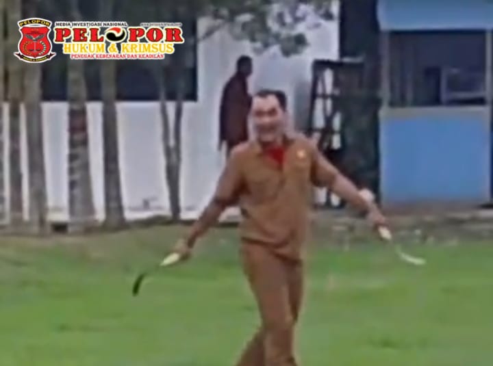 Dari vidio beredar, tampak setelah oknum guru dan para pelajar saling adu jotos didalam sekolah, oknum guru mengayunkan dua celurit cukup besar seraya mengancam para pelajar dengan mengatakan ” Mati Kau “.