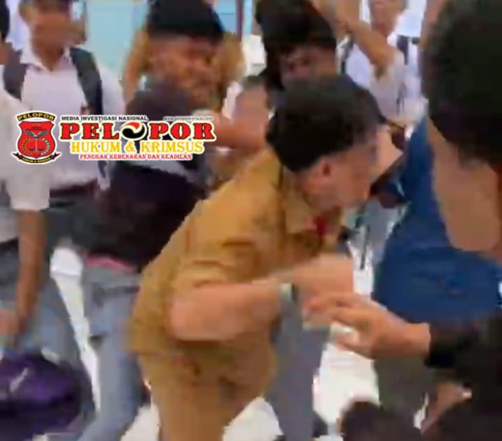 Dan dari vidio, tampak seorang oknum guru saling pukul dengan para pelajar, karena kalah jumlah, guru langsung masuk kedalam kantor demi meredam kemarahan para pelajar.