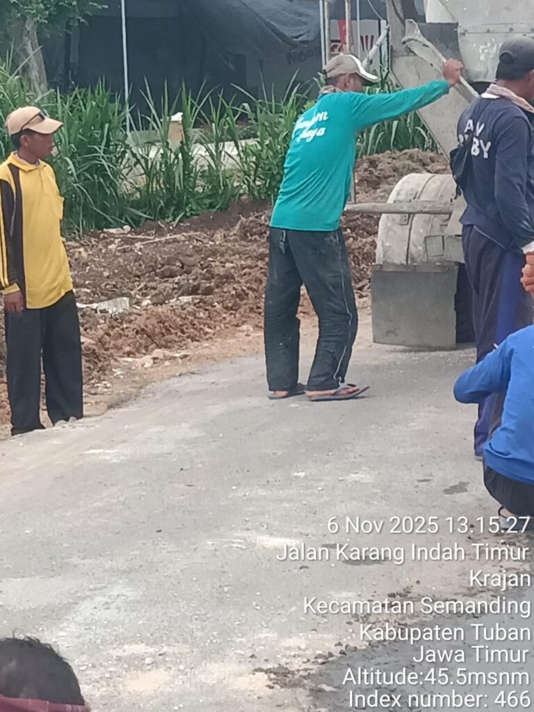Tuban,peloporkrimsus.com – Pembangunan pelebaran Jalan Rabat Beton di Jalan Karang Indah Timur, kecamatan Semanding tidak mengutamakan K.3 dan tidak ada papan proyek hal ini sudah jelas melanggar ketentuan perjanjian kontrak, sebab dalam suatu pekerjaan kontruksi dibidang apapun harus diutamakan untuk keselamatan dan kesehatan kerja, karena itu syarat mutlak dari pemerintah, serta harus ada papan nama supaya masyarakat paham kalau pekerjaan tersebut adalah program kerja pemerintah yang dimanfaatkan untuk masyarakat nya atau Rakyat nya.