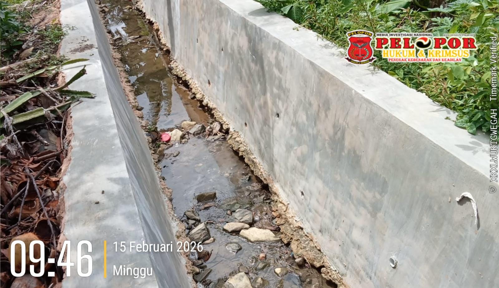 Junaidi mengungkapkan bahwa material pasir yang digunakan diduga kuat merupakan pasir gunung dengan kadar tanah yang tinggi, sehingga mengurangi kualitas beton. Dampaknya terlihat pada kondisi fisik bangunan. Meskipun tergolong baru, pondasi drainase ditemukan dalam kondisi mengkhawatirkan, tidak kokoh, dan sebagian konstruksi nyaris putus. “Ini sangat memprihatinkan mengingat proyek ini baru seumur jagung,” tegas Junaidi.