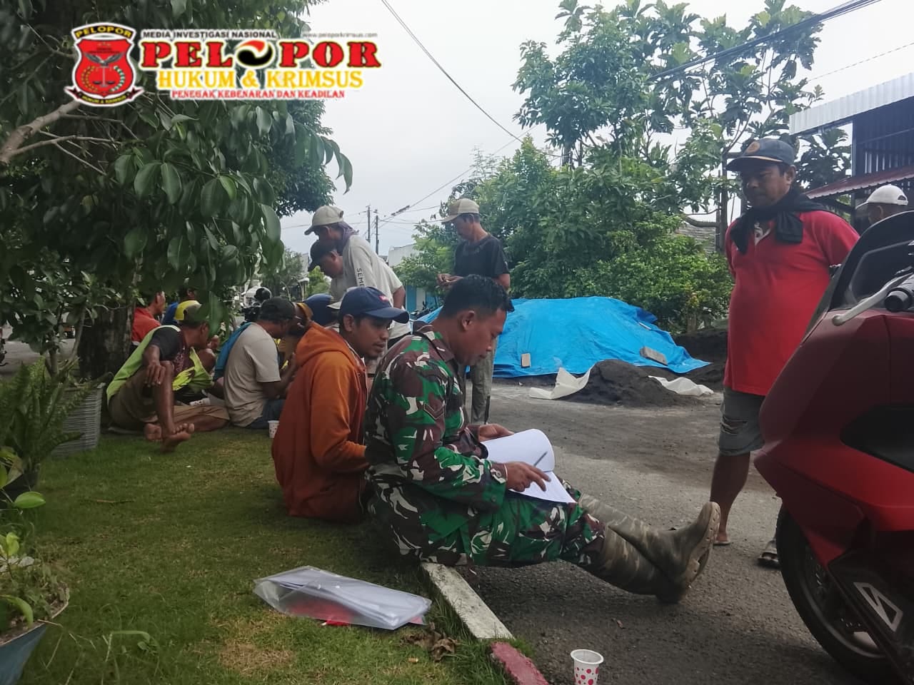 Danramil 0816-02/ Lettu Inf Nur Komari, memberikan apresiasi terhadap dedikasi Babinsa dan para pekerja yang terus menjaga ritme pembangunan walaupun kondisi lapangan menuntut kerja ekstra.