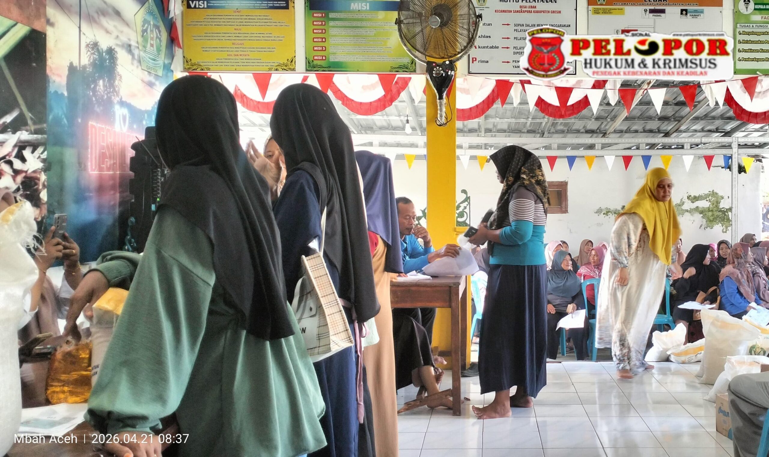Gresik,peloporkrimsus.com – Pemerintah melalui Badan Pangan Nasional (Bapanas) memastikan pelaksanaan program stimulus ekonomi kuartal pertama tahun 2026, yakni bantuan pangan beras dan minyak goreng, terus berjalan hingga April. Program tersebut, Pemerintah Desa (Pemdes) Lebak di wilayah kecamatan Sangkapura, pulau Bawean, Kabupaten Gresik, mendukung dan mensukseskan penyaluran bantuan pangan beras dan minyak goreng kepada 760 keluarga penerima manfaat (KPM).