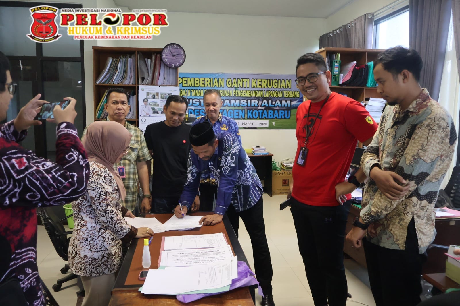 Kotabaru,Peloporkrimsus.com – Pemerintah Kabupaten Kotabaru melalui Dinas Perumahan Rakyat, Kawasan Permukiman dan Pertanahan (Perkimtan) melaksanakan pembayaran ganti kerugian lahan untuk rencana perluasan Bandar Udara Gusti Sjamsir Alam, pada hari Kamis, 12 Maret 2026.