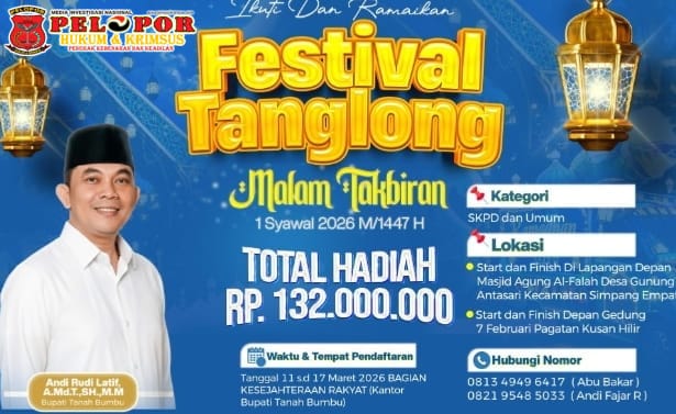 BATULICIN,Peloporkrimsus.com –Pemerintah Kabupaten Tanah Bumbu akan menggelar Festival Tanglong untuk memeriahkan malam takbiran Idulfitri 1447 Hijriah/2026 M.