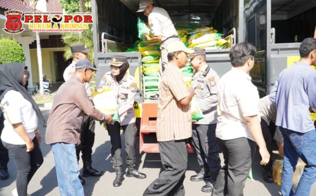 Pada kegiatan ini, Polda Jatim menyalurkan 1.050 paket beras SPHP masing-masing seberat 5 kilogram dan 1.000 liter minyak goreng merek Kita.