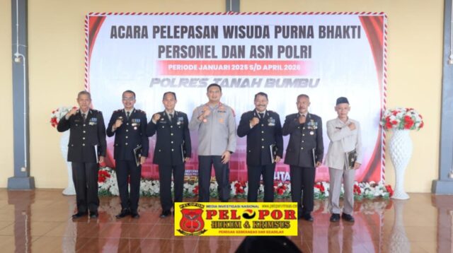 Tanah Bumbu,Peloporkrimsus.com -10 April 2026 — Polres Tanah Bumbu menggelar upacara wisuda purna bhakti bagi enam personel yang telah menyelesaikan masa tugasnya, Jumat (10/4/2026) pagi. Kegiatan berlangsung khidmat di Joglo Wicaksana Laghawa sekitar pukul 08.30 WITA.