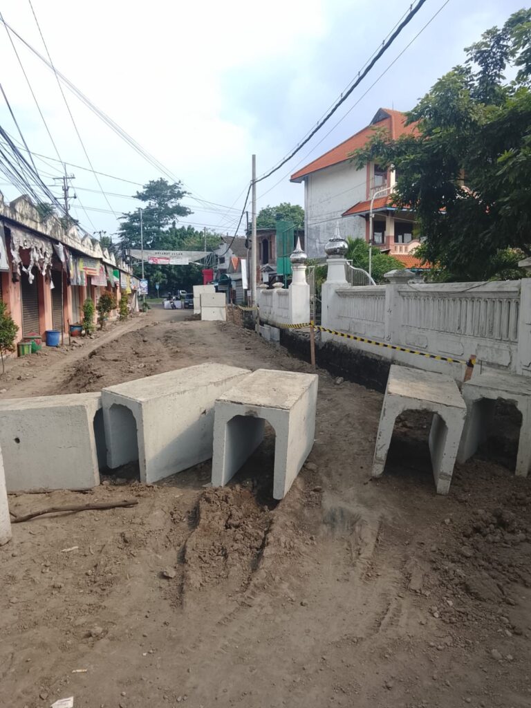 penggalian pekerjaan 5 hari kemarin sempat berhenti di karenakan alat berat nya rusak, Material U-Ditch yang belum dipasang dibiarkan tercecer di tengah badan jalan. Kondisi ini mengganggu lalu lintas warga dan dikuatirkan menimbulkan risiko kecelakaan.