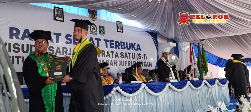 Gresik, peloporkrimsus.com – Institut Agama Islam Hasan Jufri (INHAFI) Bawean menyelenggarakan Rapat Senat Terbuka dalam rangka Wisuda Sarjana Strata 1 (S1) ke-6 pada Kamis tanggal 9 Oktober 2025. Acara tersebut berlangsung didepan Aula Pondok Pesantren Hasan Jufri yang berada di dusun Kebonagung desa Lebak kecamatan Sangkapura, Bawean, dimulai pukul 08:00 hingga 11:00 WIB.