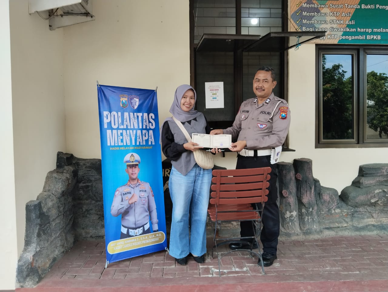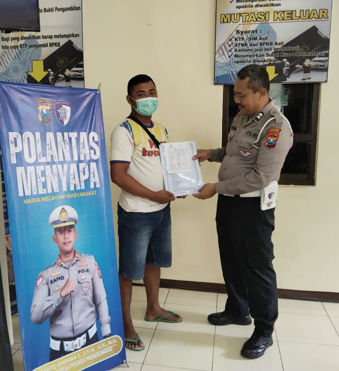 Probolinggo,peloporkrimsus.com – Program “Polantas Menyapa” yang digaungkan oleh Direktorat Lalu Lintas Polda Jatim sudah merambah hingga Samsat Kraksaan, menurut Kasatlantas AKP Safiq Jundhira Z, melalui Kanit Regident Samsat Kraksaan, Iptu Naufal Arya “Anggota Satlantas sudah mengawali kegiatan yang sama berupa program “Tanya Saya” yang sudah berjalan.