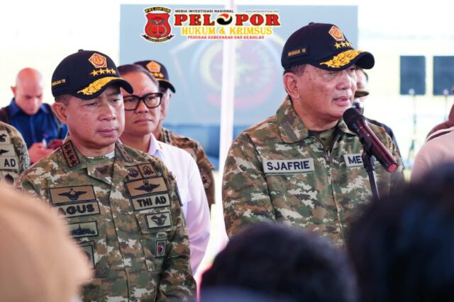BANGKA, peloporkrimsus.com — TNI mengerahkan puluhan ribu prajurit dari tiga matra dalam Latihan TNI Terintegrasi Tahun 2025 sebagai demonstrasi kekuatan nasional sekaligus wujud komitmen melindungi aset strategis negara di Bangka Belitung dan Morowali. Menteri Pertahanan RI Sjafrie Sjamsoeddin didampingi Panglima TNI Jenderal TNI Agus Subiyanto, serta sejumlah pejabat negara menyaksikan langsung pelaksanaan latihan dari Titik Tinjau Desa Mabat, Bangka, Rabu 19 Nopember 2025