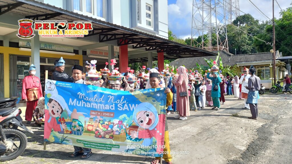 Gresik,peloporkrimsus.com – Dalam rangka momen peringatan Maulid Nabi Muhammad SAW, UPT SD Negeri 358 Gresik eks SD Negeri 1 Sungaiteluk, Bawean menggelar kegiatan peringatan maulid nabi. Kegiatan ini merupakan bagian dari pembelajaran kokurikuler, yaitu menumbuhkan nilai 8 (delapan) Dimensi Profil Lulusan.