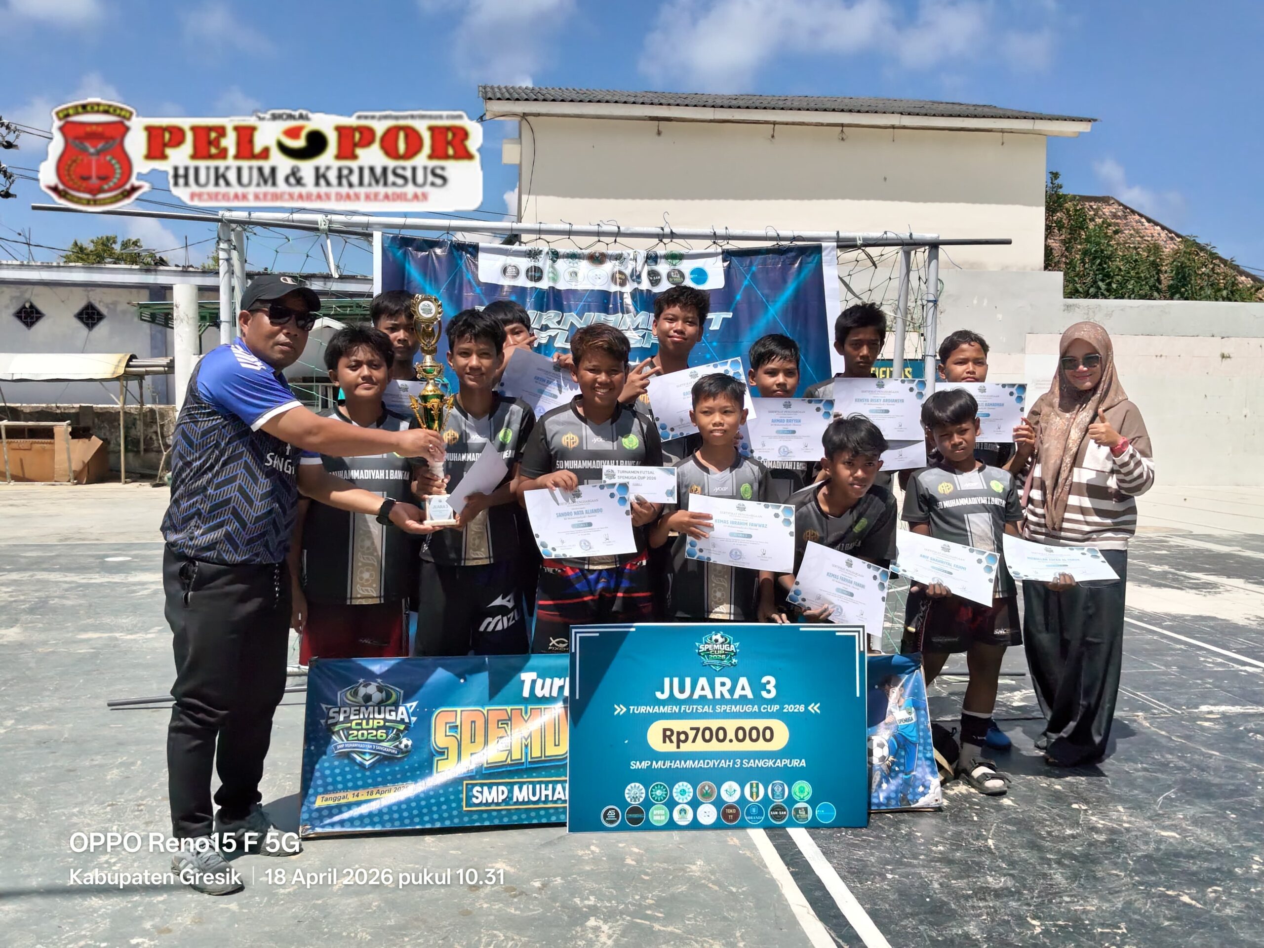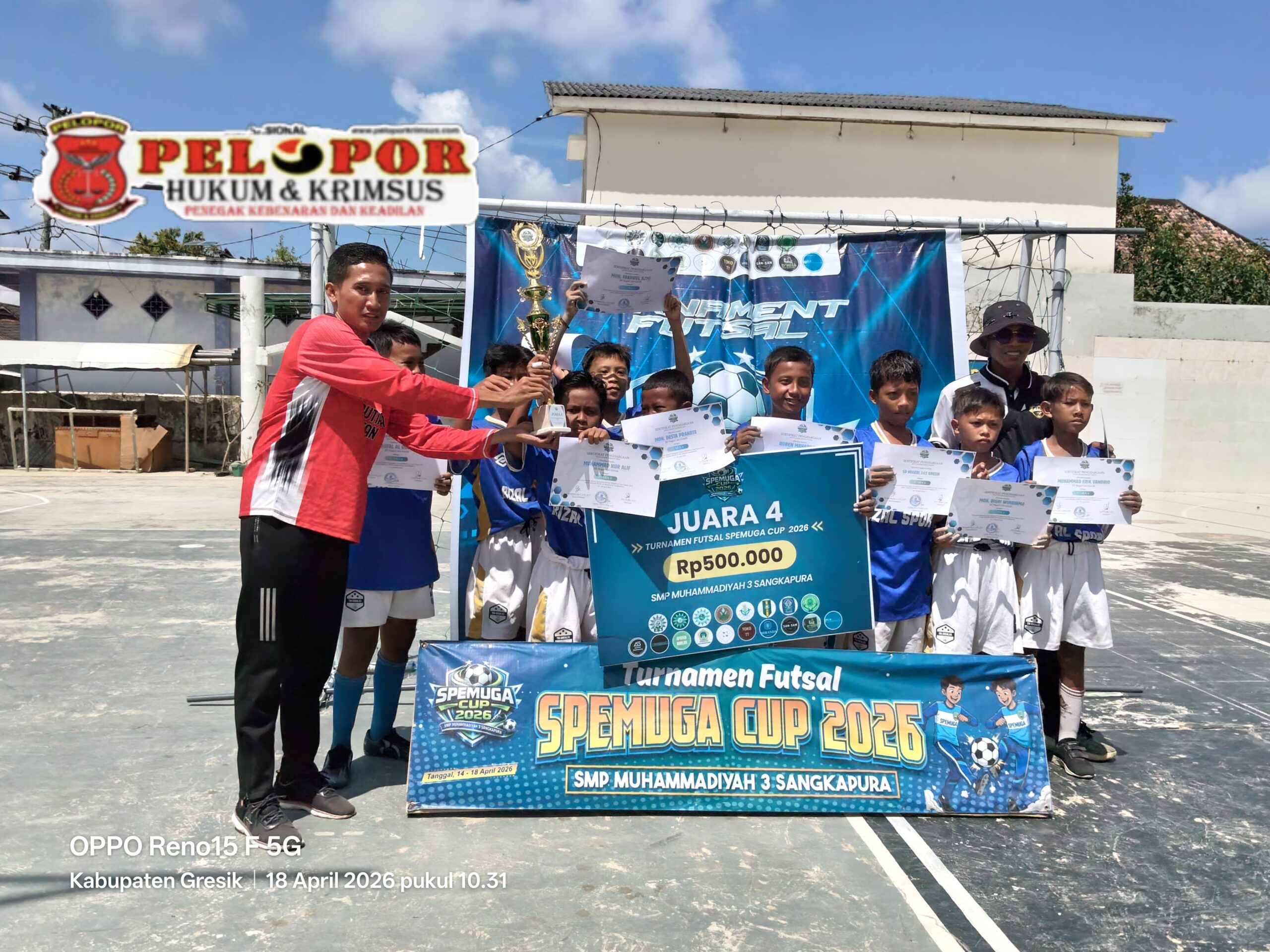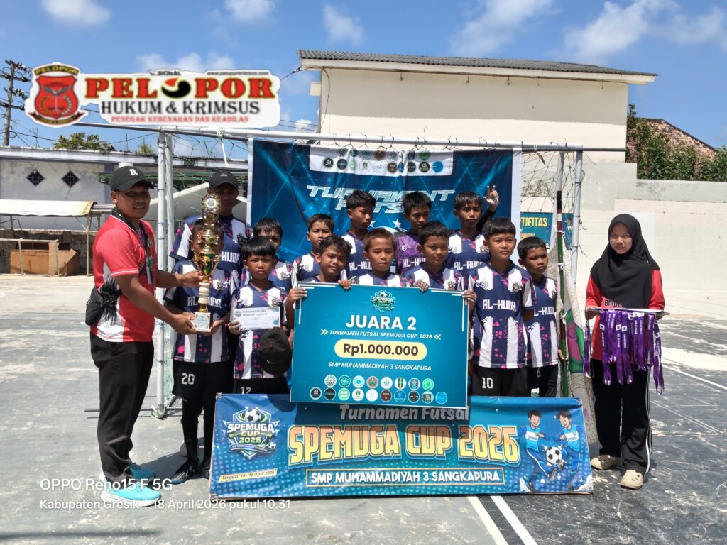 Sekadar informasi, pada turnamen futsal SPEMUGA Cup 2026 ini, juara 1 UPT SDN 329 Gresik menang 3 : 0 atas SDIT Al- Huda, dan juara 2 SD Muhammadiyah 1 Bawean menang 6 : 1 atas UPT SDN 345 Gresik. (FR)