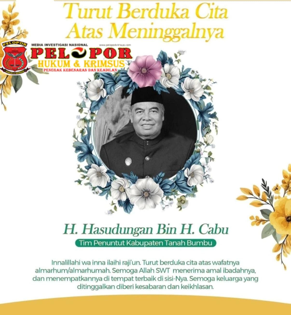 Selamat jalan, H. Hasudungan. Jasa dan pengabdianmu akan selalu hidup dalam sejarah dan ingatan masyarakat Tanah Bumbu.”(Team)