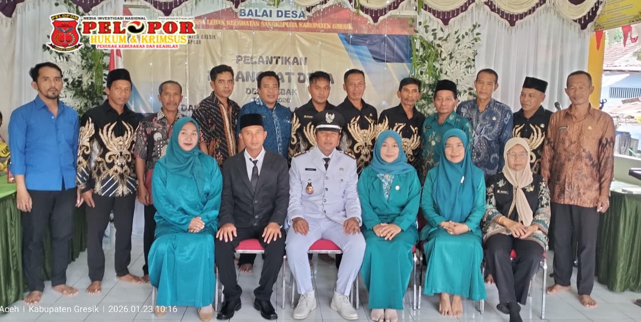 Gresik,peloporkrimsus.com – Kepala Desa (Kades) Lebak, Kecamatan Sangkapura, Fadal, SH., resmi melantik dan mengambil sumpah satu orang perangkat desa, untuk jabatan Kepala Dusun (Kasun) Rabe. Pelantikan ini berlangsung di Balai Desa Lebak pada Jum’at (23/1/2026).